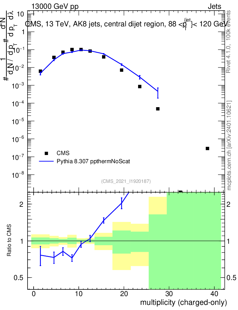 Lines: data, pythia8 8.307 ppthermNoScat |