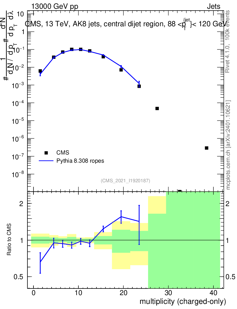 Lines: data, pythia8 8.308 ropes |