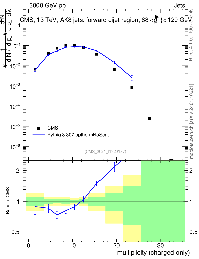 Lines: data, pythia8 8.307 ppthermNoScat |