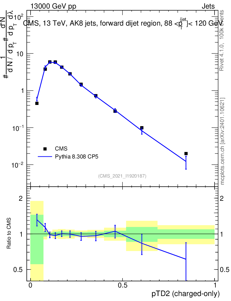 Lines: data, pythia8 8.308 CP5 |