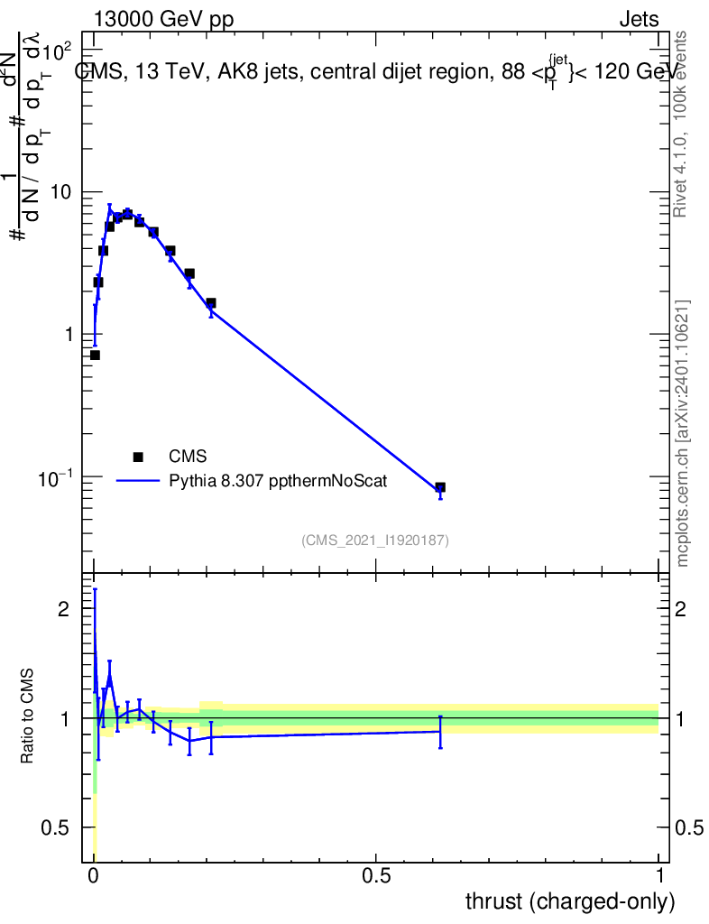 Lines: data, pythia8 8.307 ppthermNoScat |
