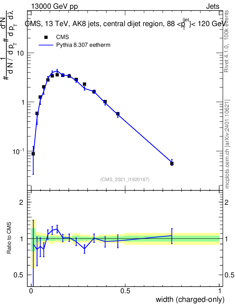 Lines: data, pythia8 8.307 eetherm |