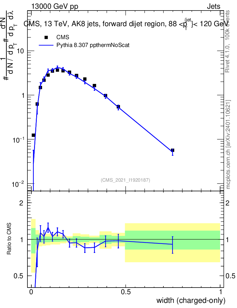 Lines: data, pythia8 8.307 ppthermNoScat |
