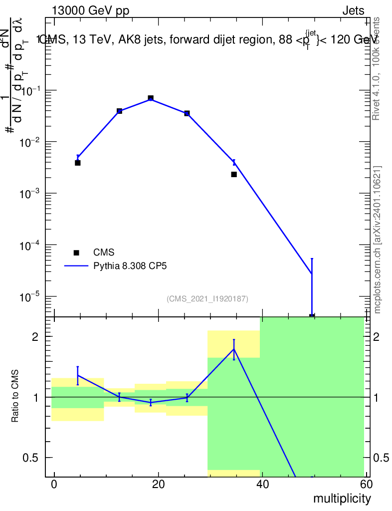 Lines: data, pythia8 8.308 CP5 |
