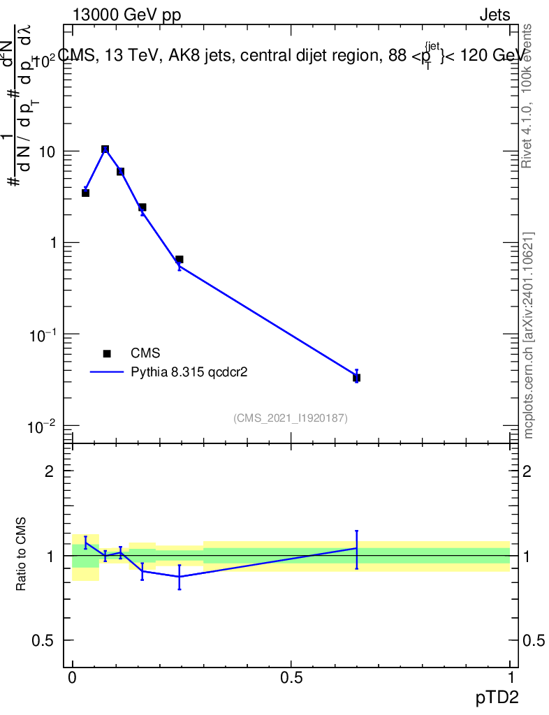 Lines: data, pythia8 8.315 qcdcr2 |
