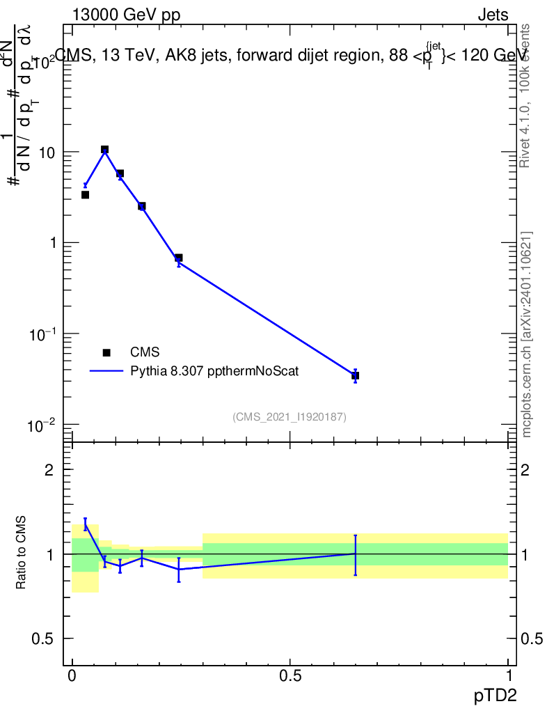 Lines: data, pythia8 8.307 ppthermNoScat |