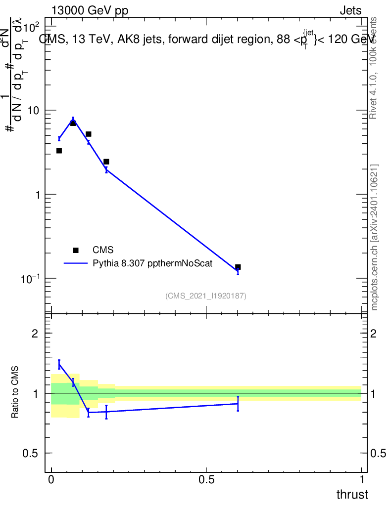 Lines: data, pythia8 8.307 ppthermNoScat |