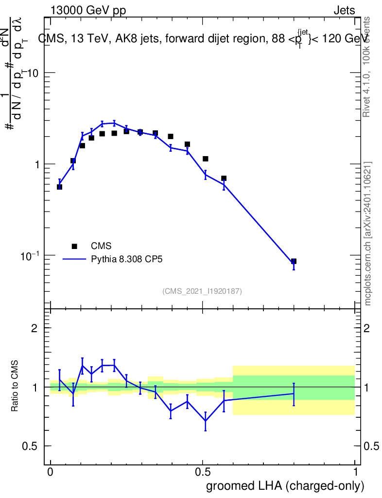 Lines: data, pythia8 8.308 CP5 |
