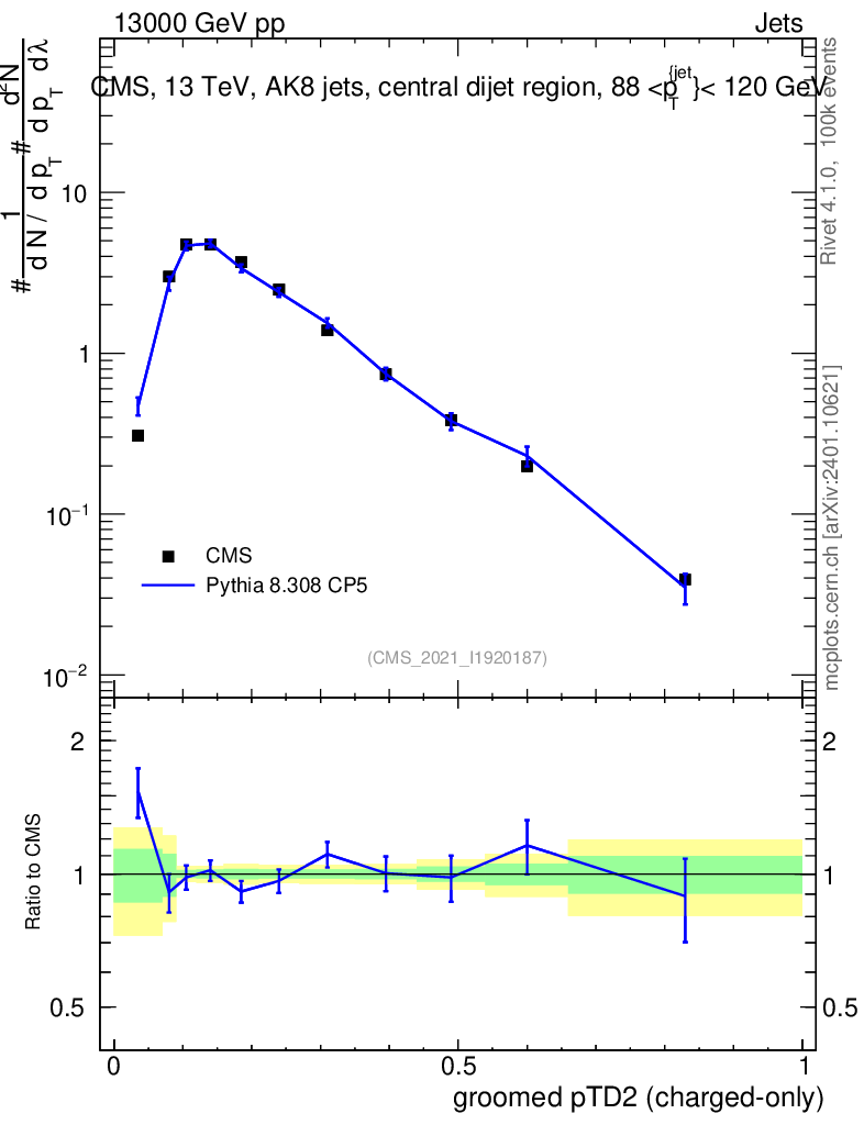 Lines: data, pythia8 8.308 CP5 |
