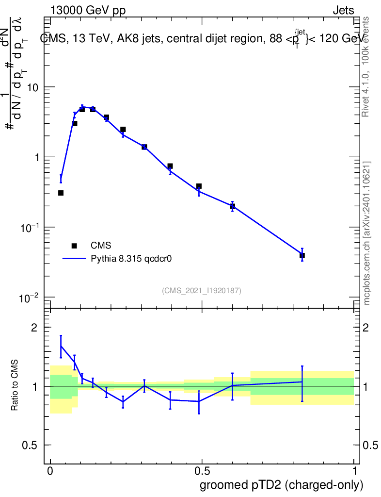 Lines: data, pythia8 8.315 qcdcr0 |