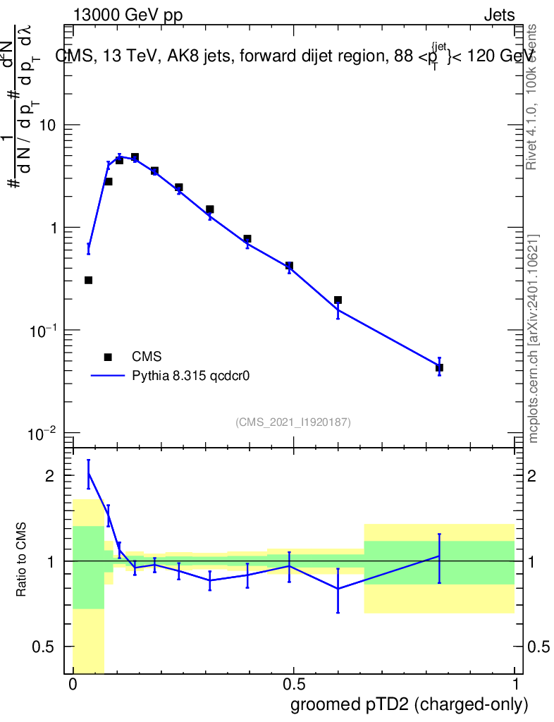 Lines: data, pythia8 8.315 qcdcr0 |