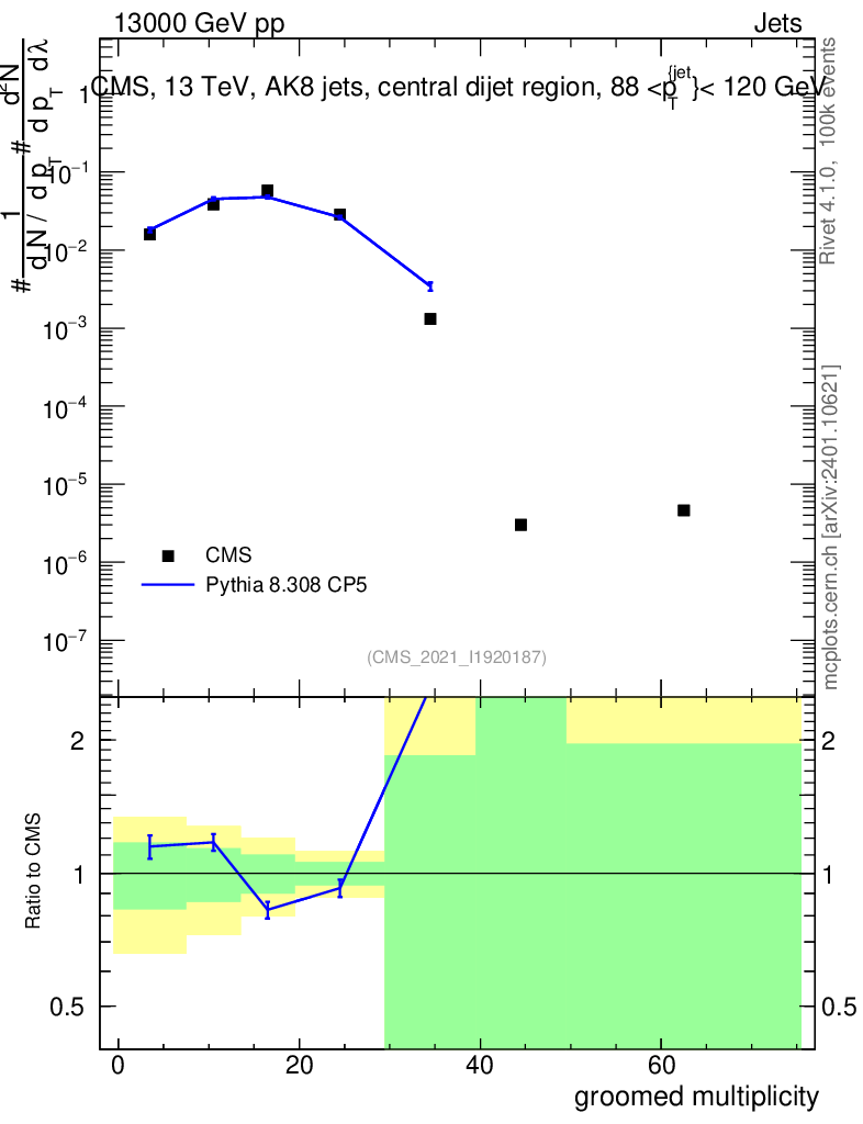 Lines: data, pythia8 8.308 CP5 |