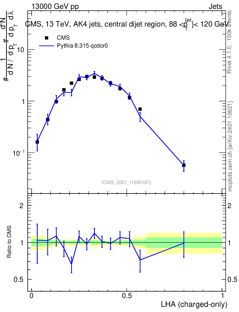 Lines: data, pythia8 8.315 qcdcr0 |