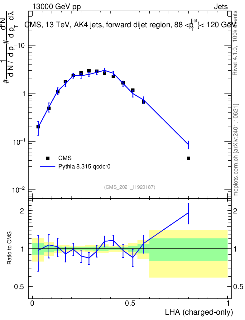 Lines: data, pythia8 8.315 qcdcr0 |