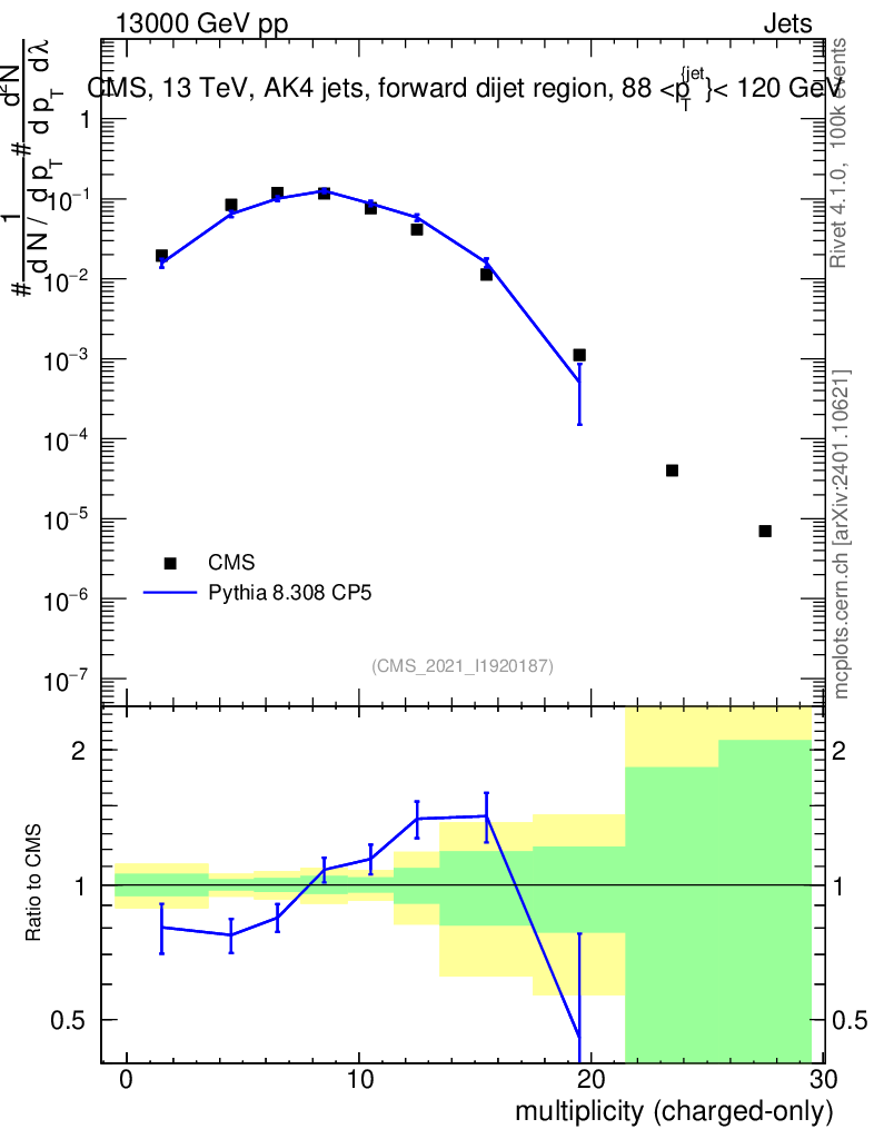 Lines: data, pythia8 8.308 CP5 |