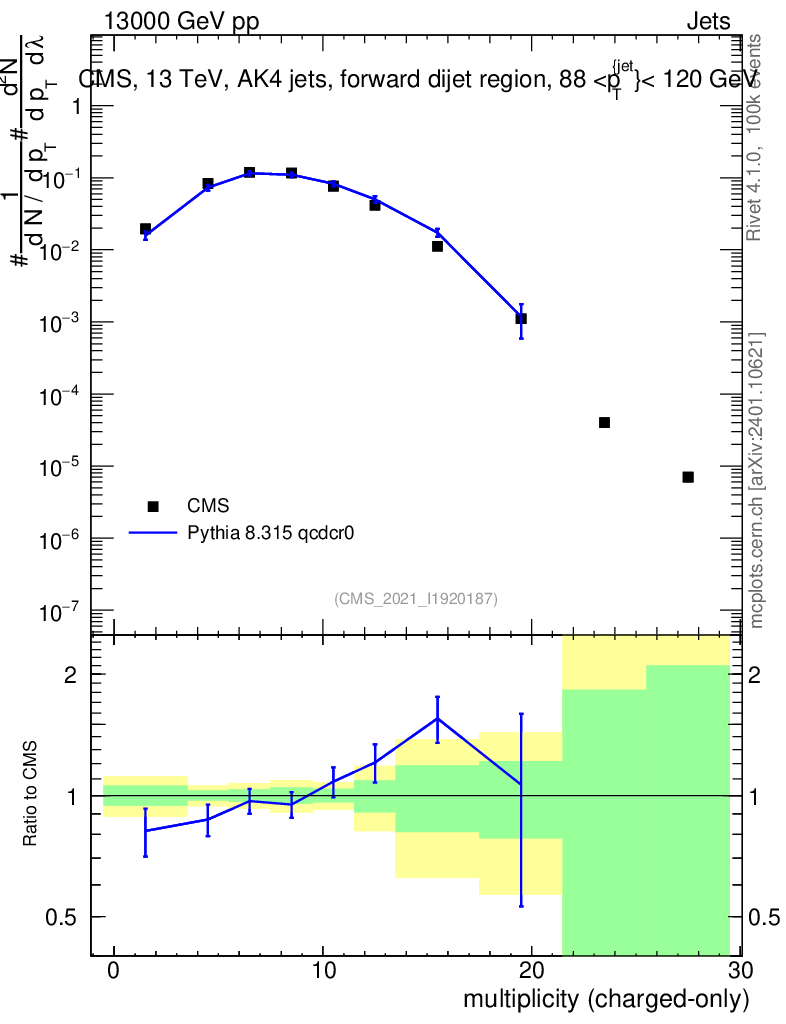 Lines: data, pythia8 8.315 qcdcr0 |