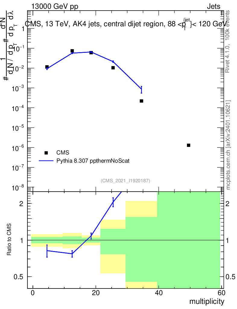 Lines: data, pythia8 8.307 ppthermNoScat |