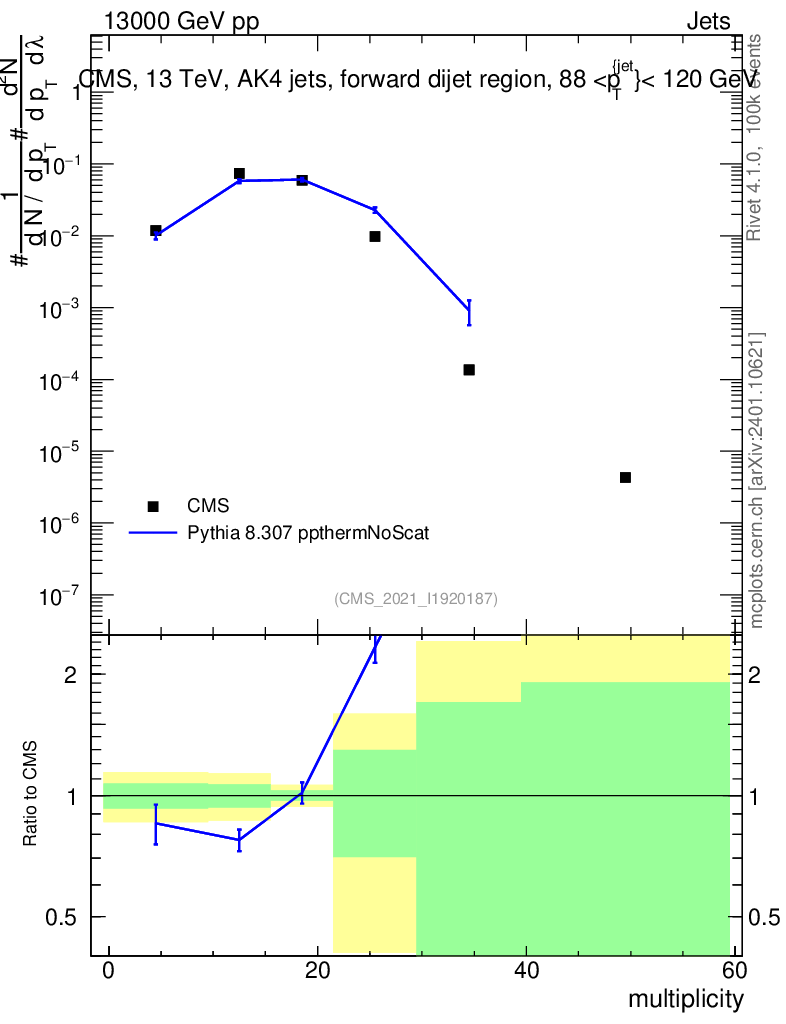 Lines: data, pythia8 8.307 ppthermNoScat |