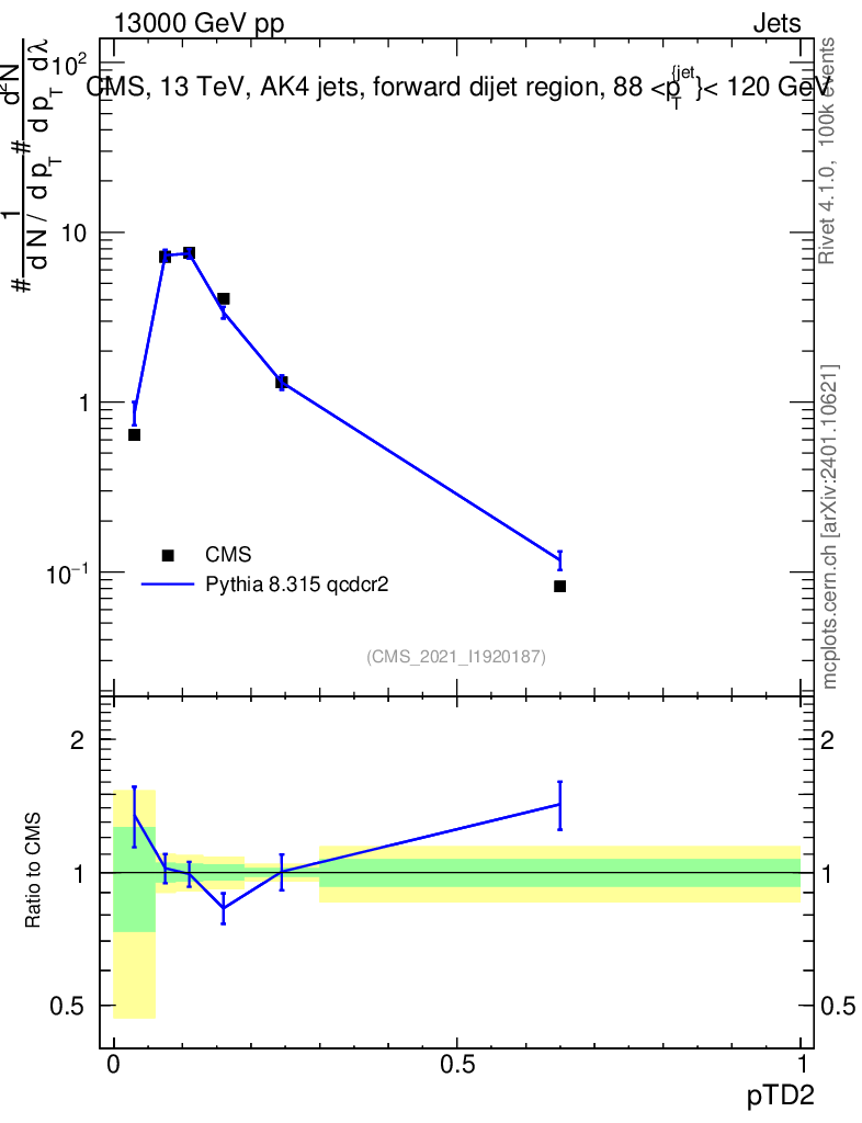 Lines: data, pythia8 8.315 qcdcr2 |