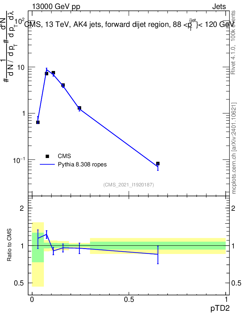 Lines: data, pythia8 8.308 ropes |