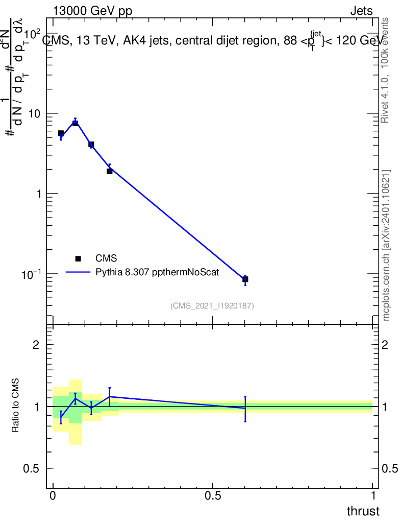 Lines: data, pythia8 8.307 ppthermNoScat |