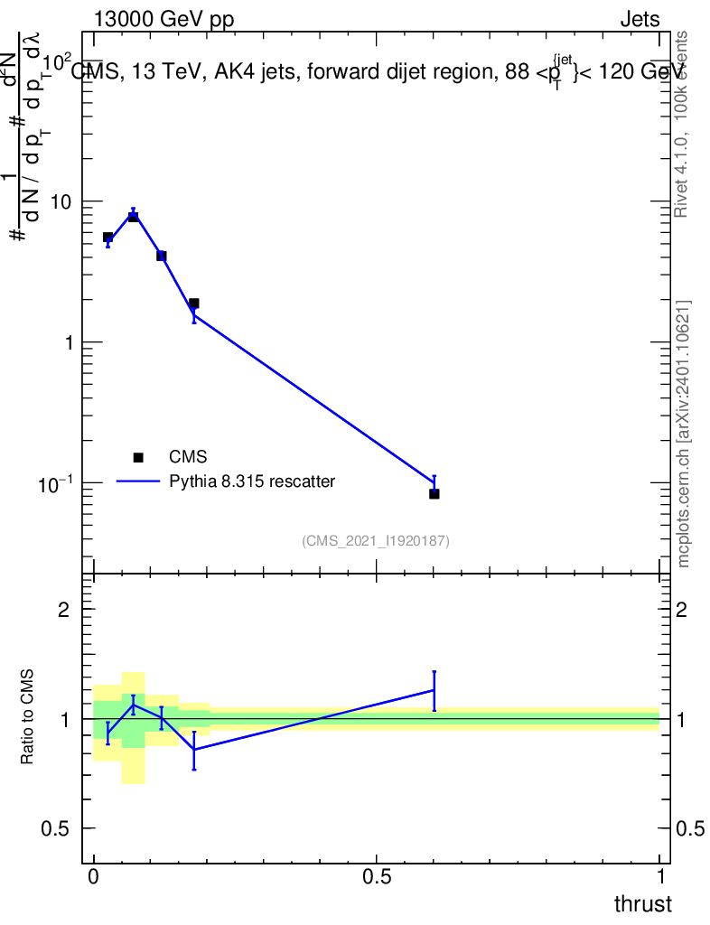 Lines: data, pythia8 8.315 rescatter |