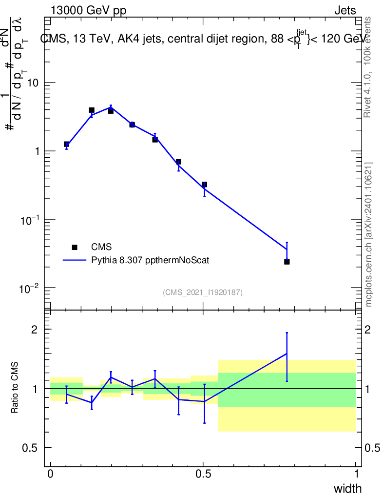 Lines: data, pythia8 8.307 ppthermNoScat |