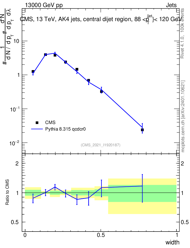 Lines: data, pythia8 8.315 qcdcr0 |
