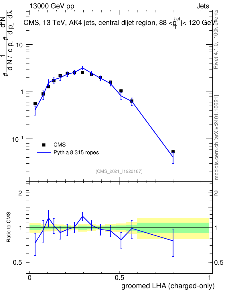 Lines: data, pythia8 8.315 ropes |