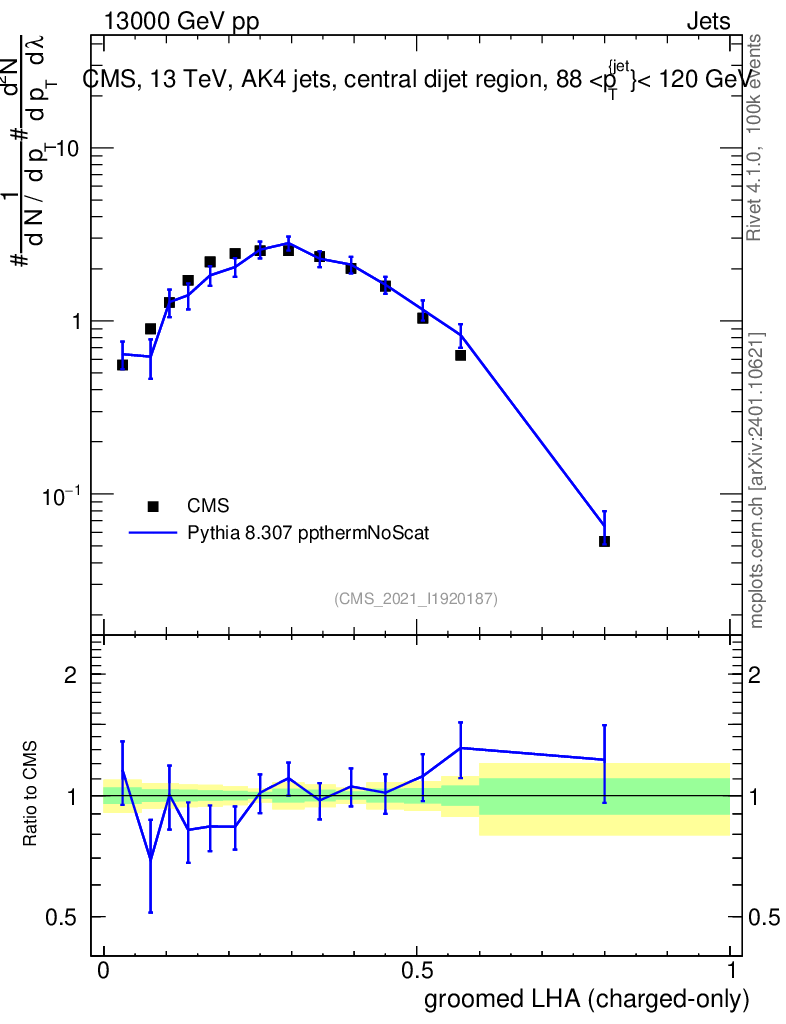 Lines: data, pythia8 8.307 ppthermNoScat |