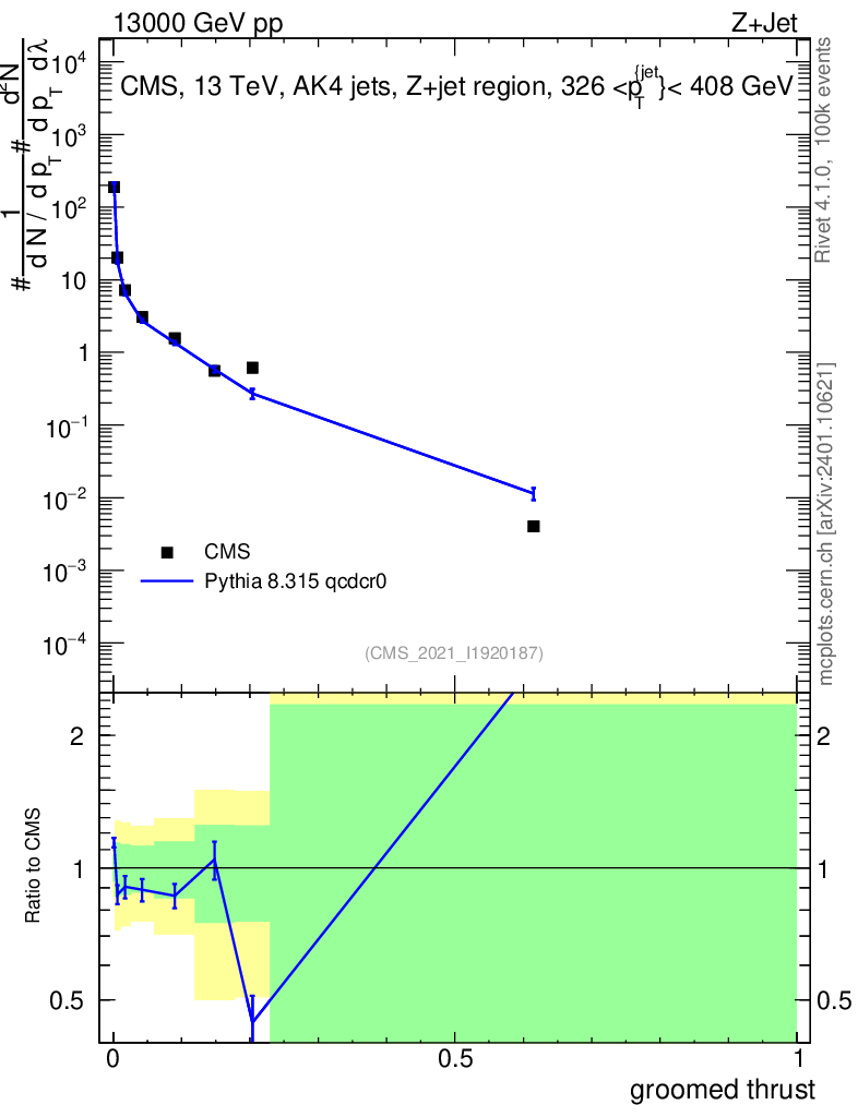 Lines: data, pythia8 8.315 qcdcr0 |