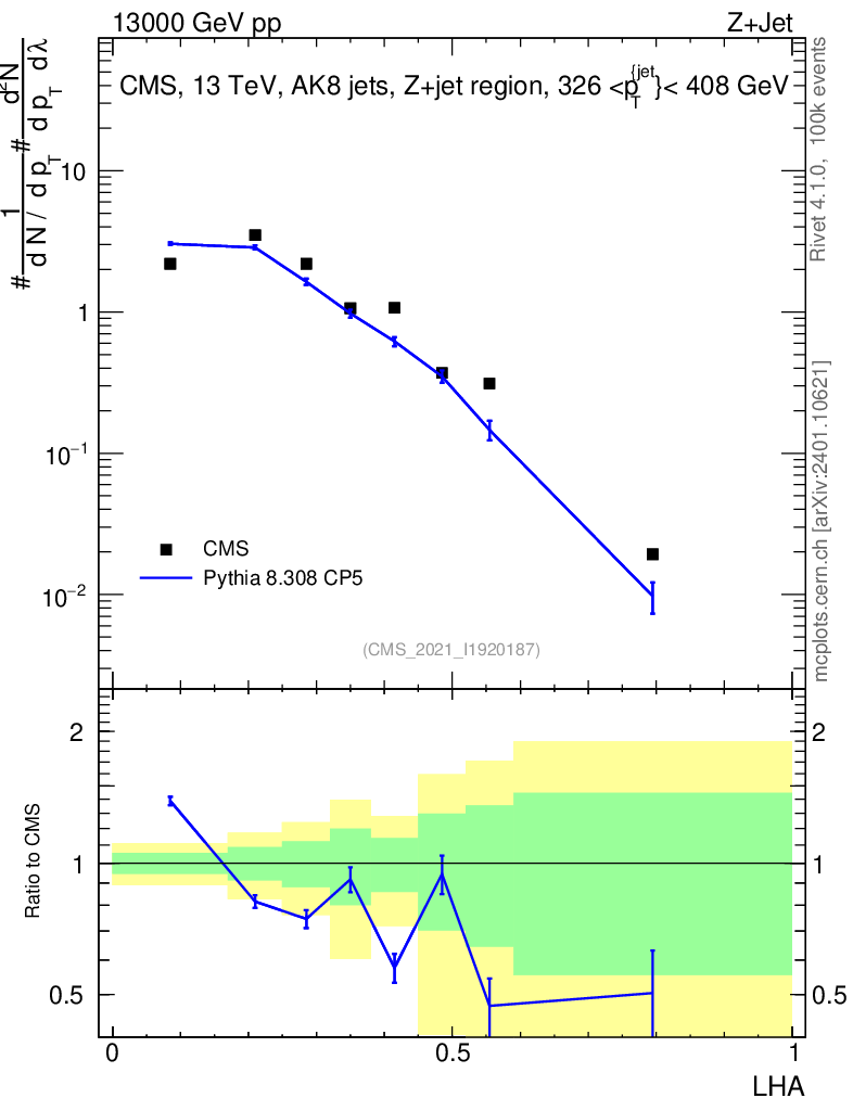 Lines: data, pythia8 8.308 CP5 |
