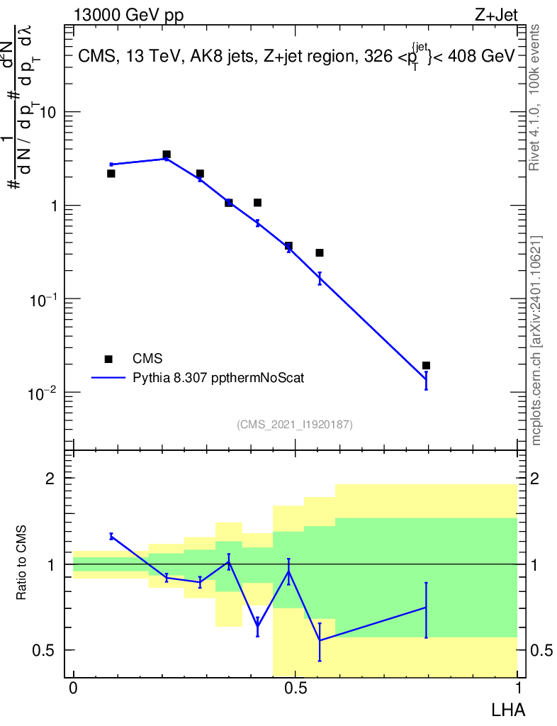 Lines: data, pythia8 8.307 ppthermNoScat |