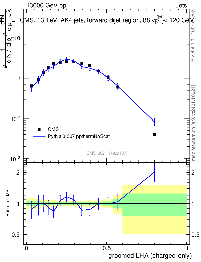 Lines: data, pythia8 8.307 ppthermNoScat |