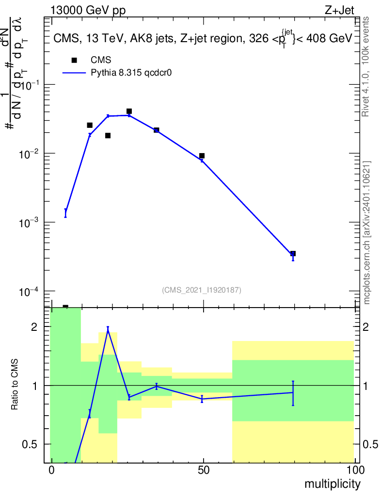 Lines: data, pythia8 8.315 qcdcr0 |