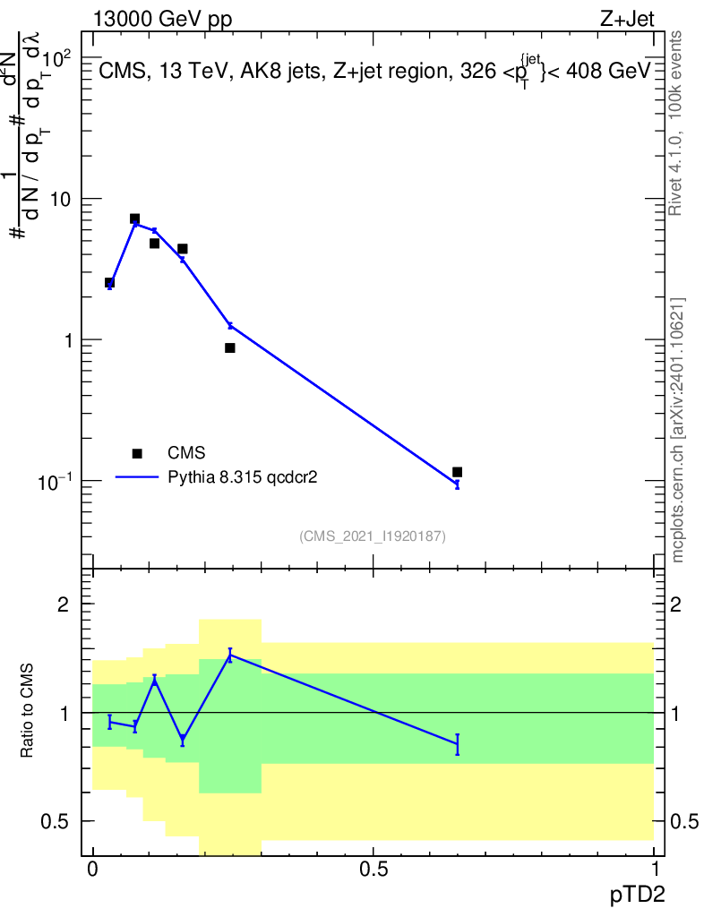 Lines: data, pythia8 8.315 qcdcr2 |