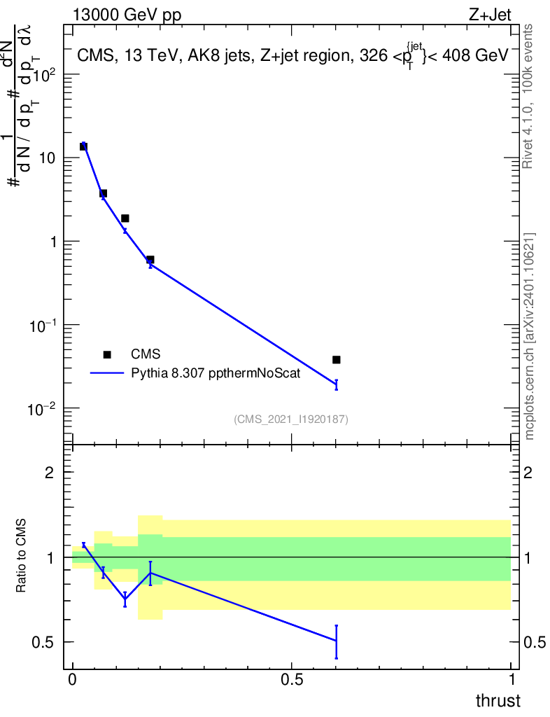 Lines: data, pythia8 8.307 ppthermNoScat |