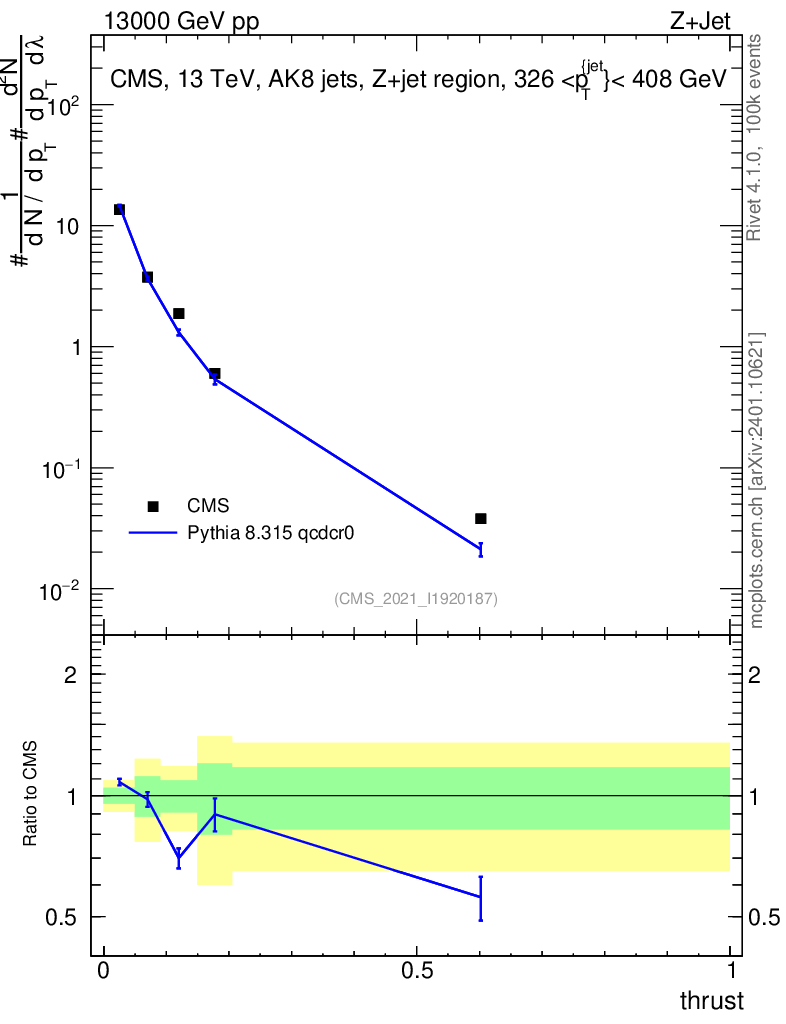 Lines: data, pythia8 8.315 qcdcr0 |