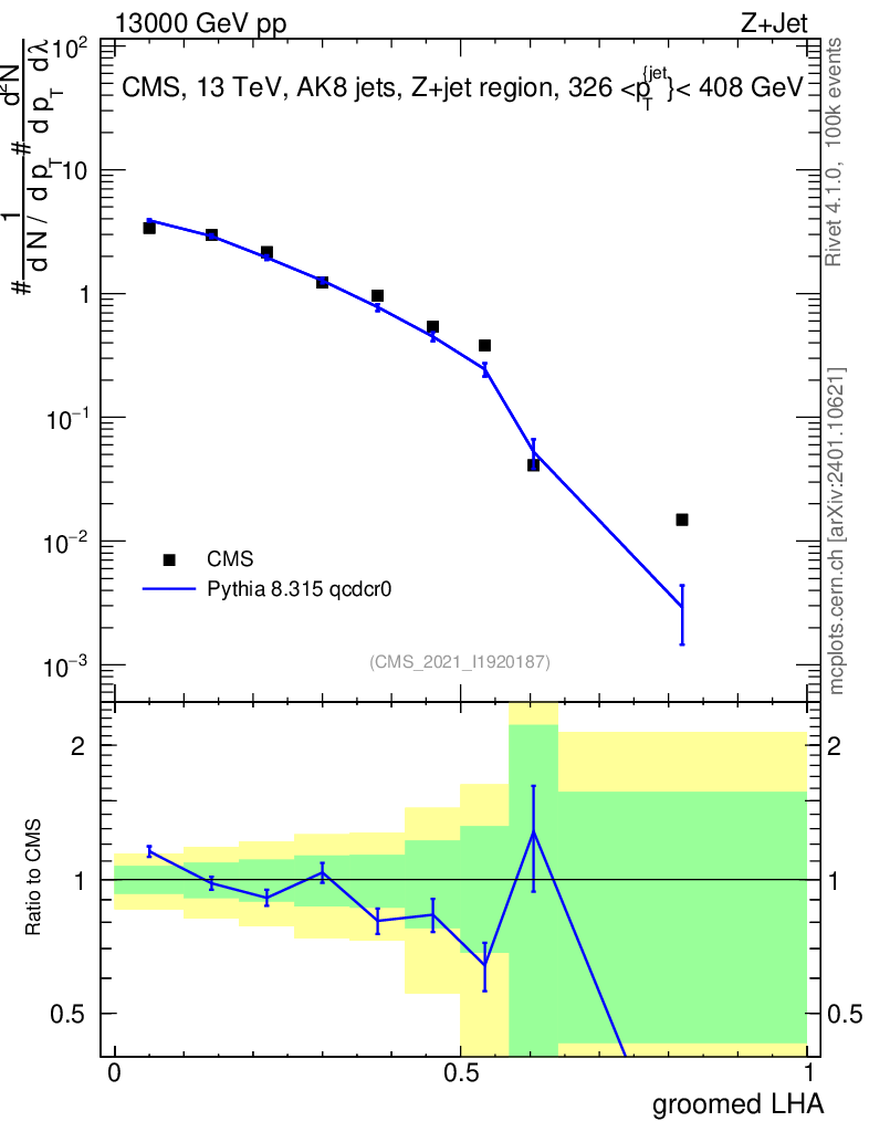Lines: data, pythia8 8.315 qcdcr0 |