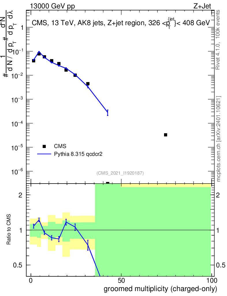 Lines: data, pythia8 8.315 qcdcr2 |