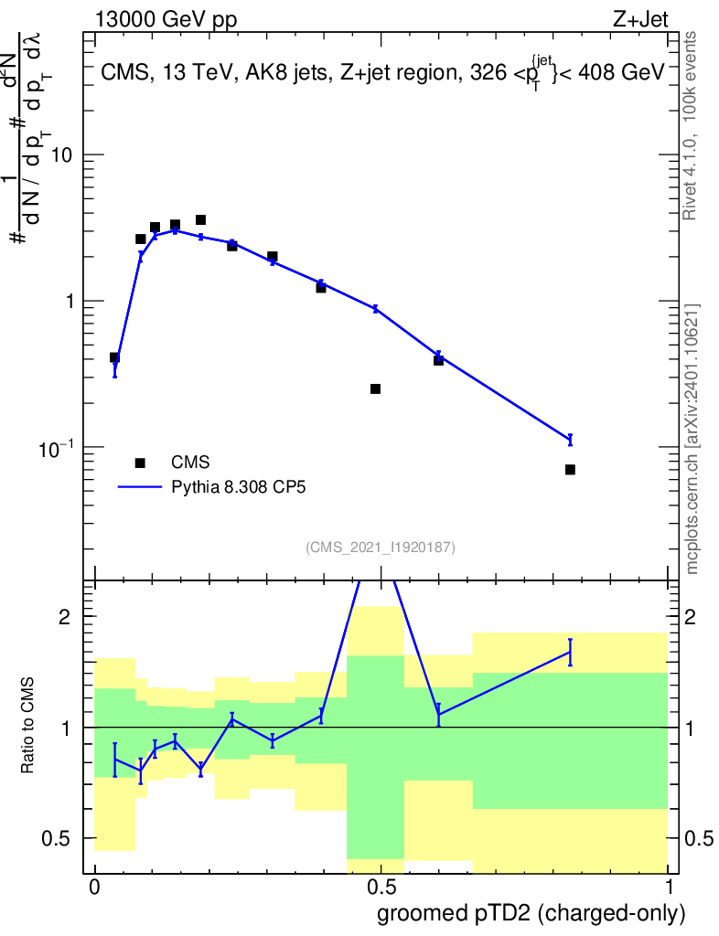 Lines: data, pythia8 8.308 CP5 |