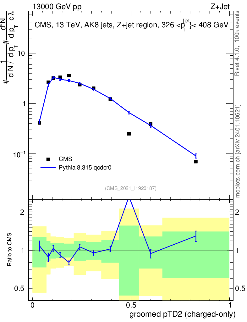 Lines: data, pythia8 8.315 qcdcr0 |