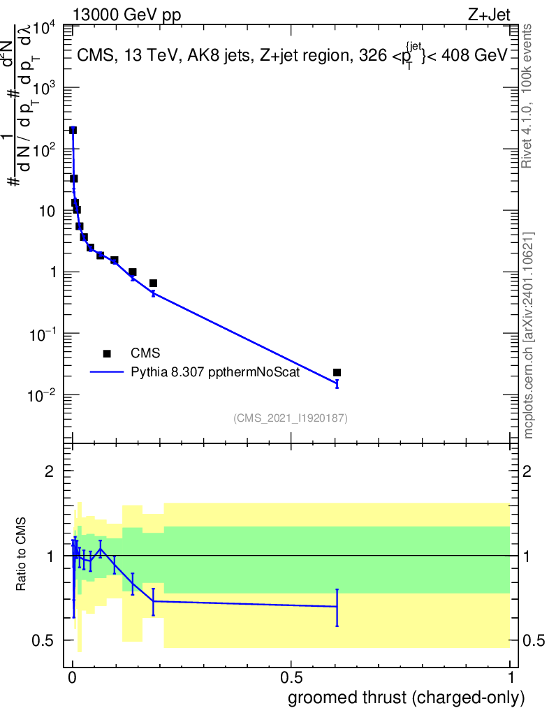 Lines: data, pythia8 8.307 ppthermNoScat |