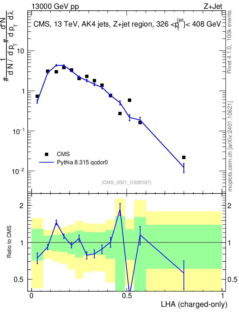 Lines: data, pythia8 8.315 qcdcr0 |