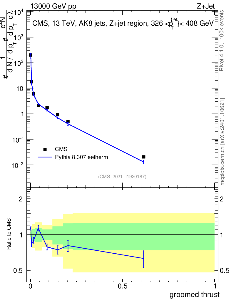 Lines: data, pythia8 8.307 eetherm |