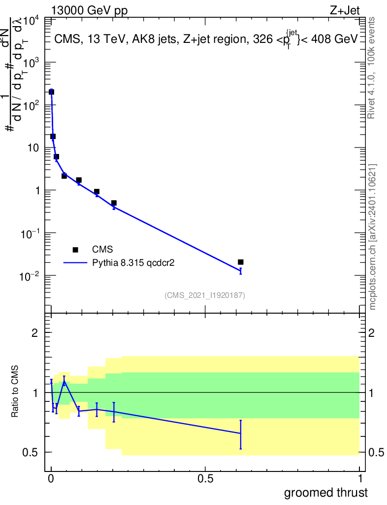 Lines: data, pythia8 8.315 qcdcr2 |