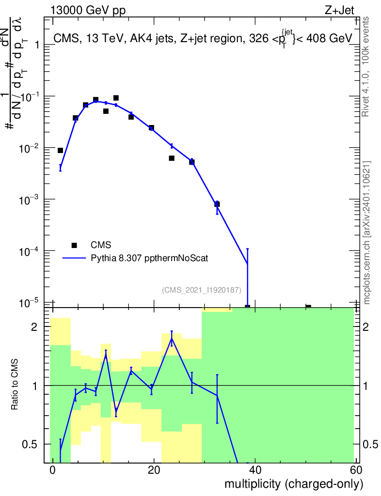 Lines: data, pythia8 8.307 ppthermNoScat |