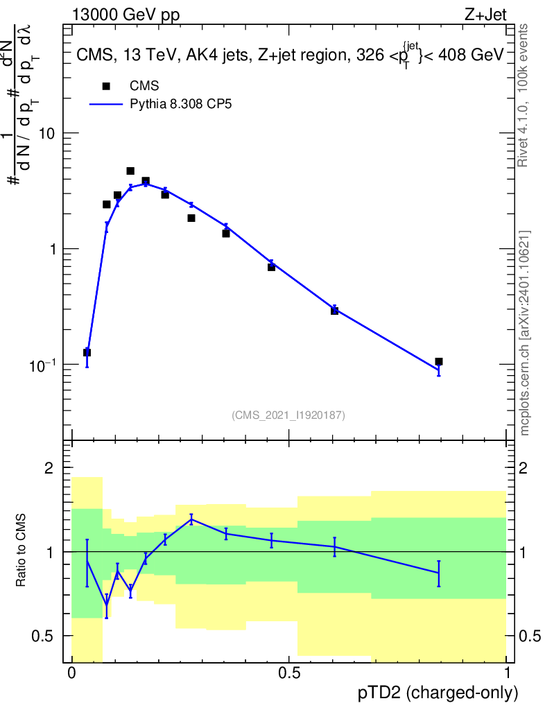 Lines: data, pythia8 8.308 CP5 |