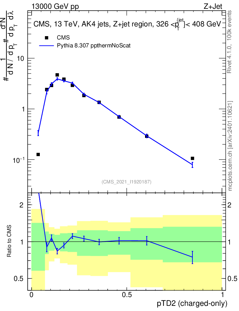 Lines: data, pythia8 8.307 ppthermNoScat |