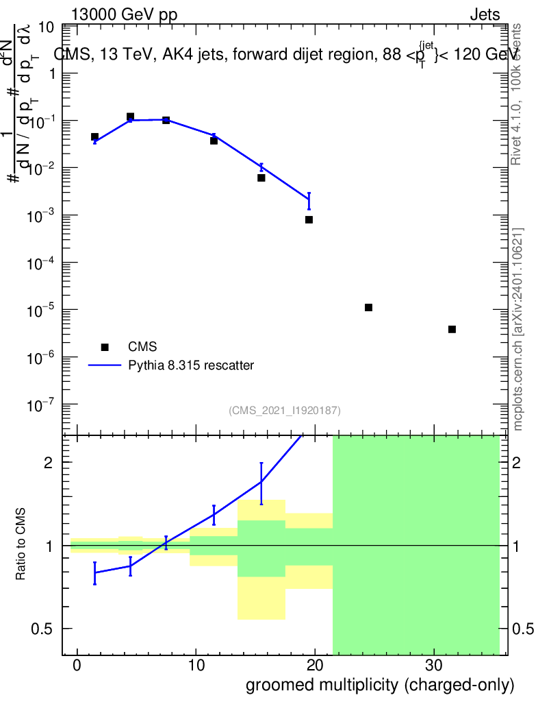 Lines: data, pythia8 8.315 rescatter |